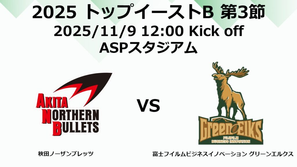 | 11月9日(日) | 12:00 | 秋田ノーザンブレッツ | 秋田ASPスタジアム | ● | 12-27 | |